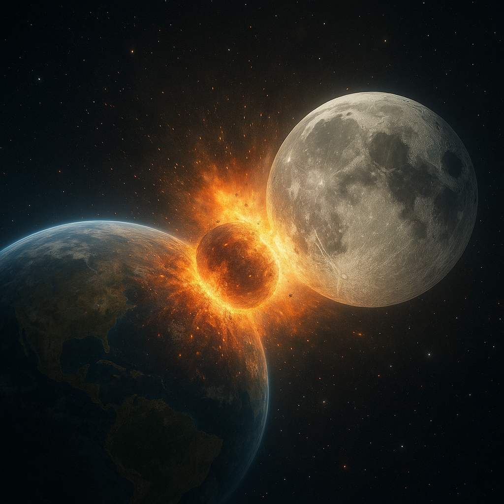 Jedna z najpopularniejszych teorii wyjaśniających genezę Księżyca wiąże się z Wielkim Zderzeniem. Według tej koncepcji, około 4,5 miliarda lat temu młoda Ziemia zderzyła się z dużym planetoidalnym obiektem, często nazywanym Theią.
